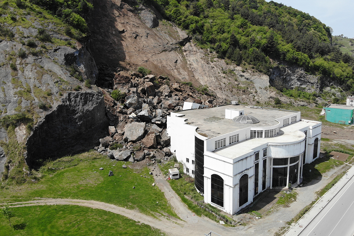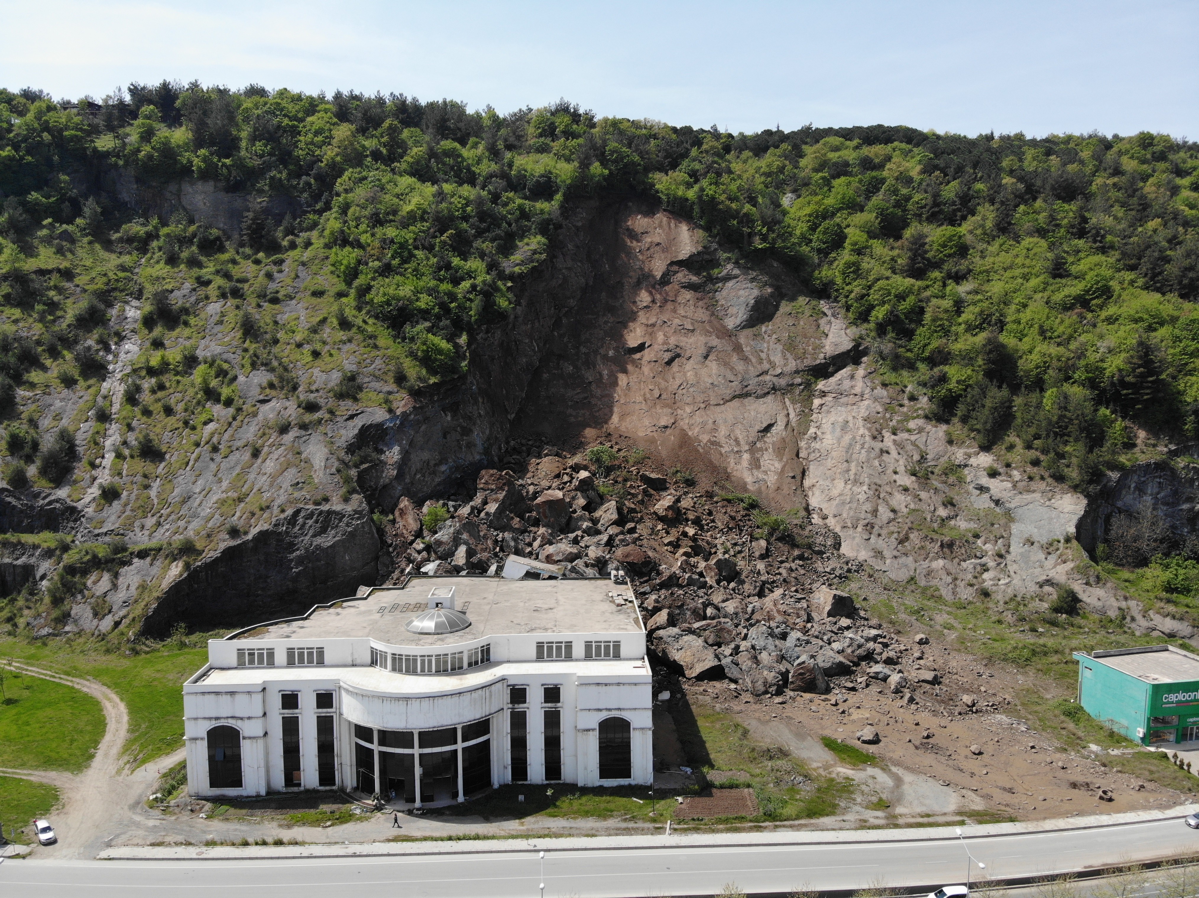 Edinilen bilgiye göre, heyelan olan bölgede daha önce de heyelan olduğu ve düğün salonu olarak yapılan binaya kaya düşmesi nedeniyle salonun işletilmeye açılamadığı öğrenildi. Alanda görevli olan personel ise olayı, “Heyelan dün gece saat 00.00 sıralarında oldu. Bir anda büyük bir ses duyduk ve panik yaşadık. Heyelan olmuş ve kayalar düşmüş” dedi.