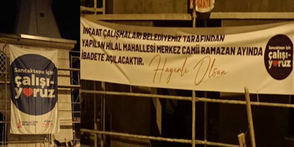 Sancaktepe Belediyesi hayırseverlerin destekleri ile bitmek üzere olan Hilal Camiine “İnşaatı belediyemiz tarafından yapılıyor” diye pankart asması akıllara AK Parti yönetiminin projelerine konan İstanbul Büyükşehir Belediye Başkanı Ekrem İmamoğlu’nu akıllara getirdi.