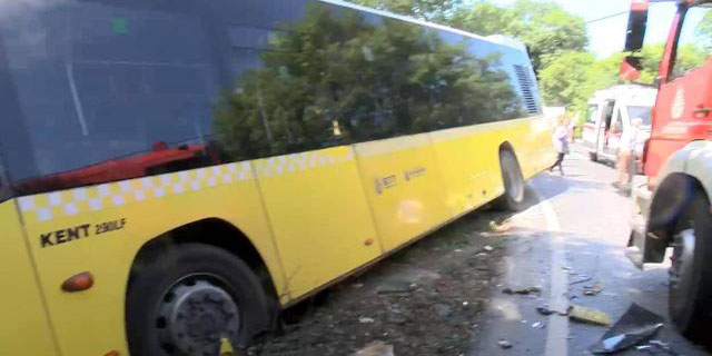 Zekeriyaköy Kilyos Caddesi'nde seyir halindeki İETT otobüsü karşı yönden gelen bir araçla çarpıştı. Çarpışmanın etkisiyle, yoldan çıkan otobüs, ağaçlara çarparak durabildi.