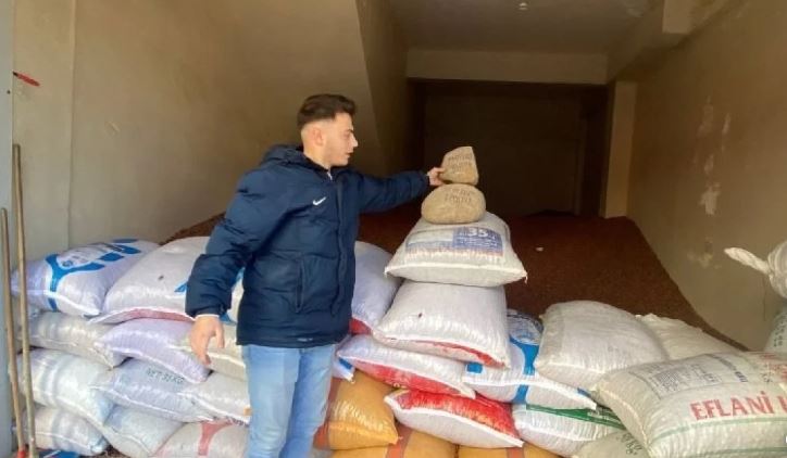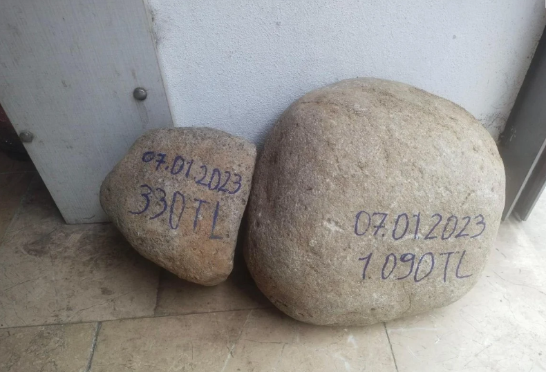 Aydın, aldığı 2 çuvalı devirdiğinde ise çuvallardan 2 tane biri büyük diğeri küçük boyda olmak üzere dökülen taşları gördü.