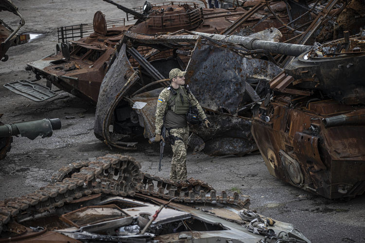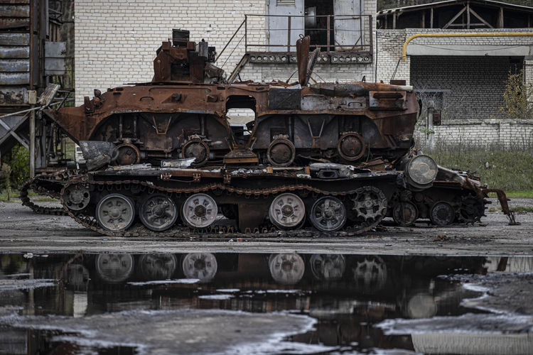 Şehirde yer alan ve Rus güçlerince kullanılamaz hale gelen askeri araçların konulduğu bir yem fabrikası da basın mensuplarına açıldı. Burada çok sayıda Rus güçlerine ait yanmış tank ve zırhlı araç olması dikkati çekti.