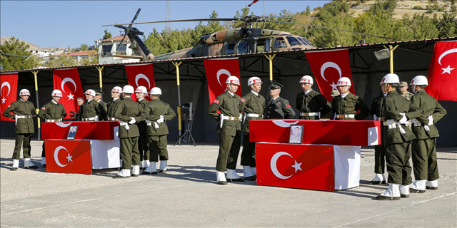 23. Piyade Tümen Komutanlığı'nda gerçekleştirilen törende şehitler Yıldız (24) ve Güner'in (23) Türk bayrağına sarılı naaşı alana getirilerek katafalka konuldu, saygı duruşunda bulunuldu.