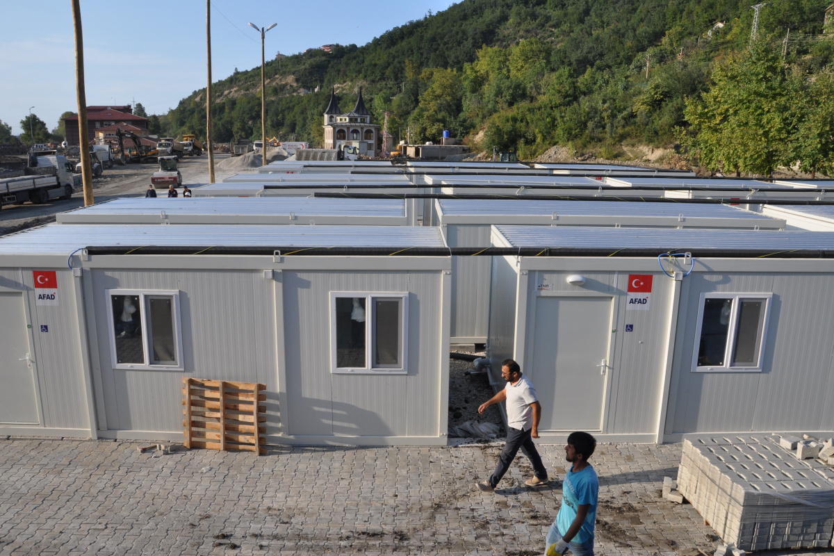 Ayrıca konteynır evlerin önüne parke de döşeniyor. Selde evlerini kaybeden engelli vatandaşlar için de özel dizayn edilen konteynır evler bulunuyor. Selde evlerini kaybeden aileler, evleri yeniden inşa edilene kadar bu konteynırlarda kalabilecekler.