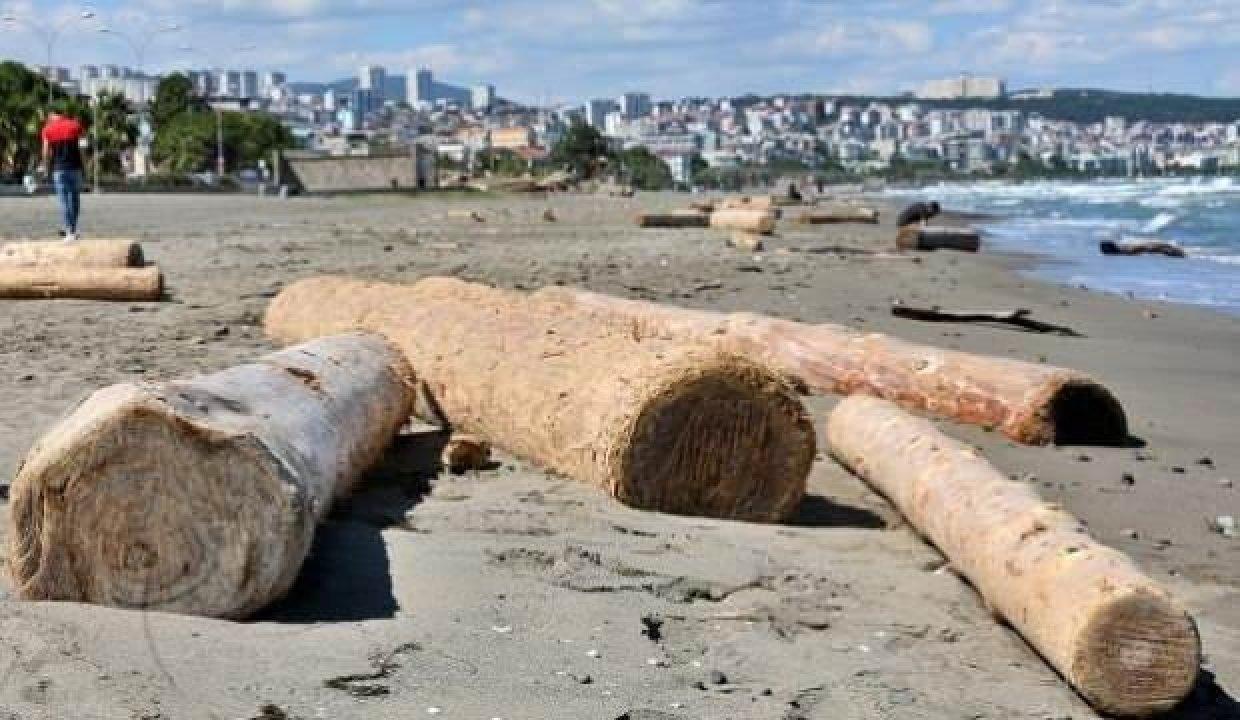 Sel sularının denize sürüklediği çok sayıda tomruğun bir bölümü Samsun'un Atakum ilçesinde sahile vurdu. Denizde de tomruklar olduğu görüldü.