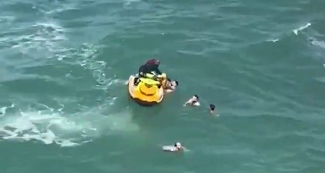 İhbar üzerine olay yerine itfaiye ekipleri jet ski ile geldi. Ekipler denizdekileri kurtardı. Kurtarma anları ise cep telefonu kameralarına yansıdı.