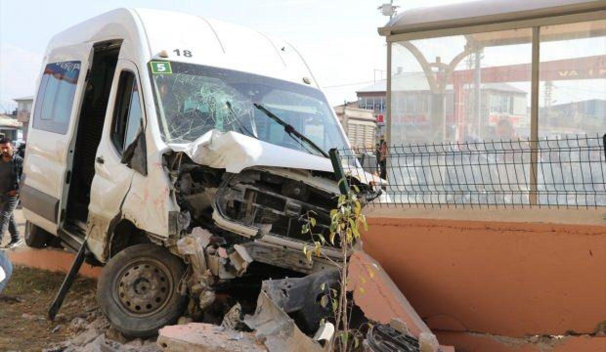 Savrularak çarptığı duvarı yıkıp yurdun bahçesine giren minibüsteki 6 öğrenci ile H.A. yaralandı.