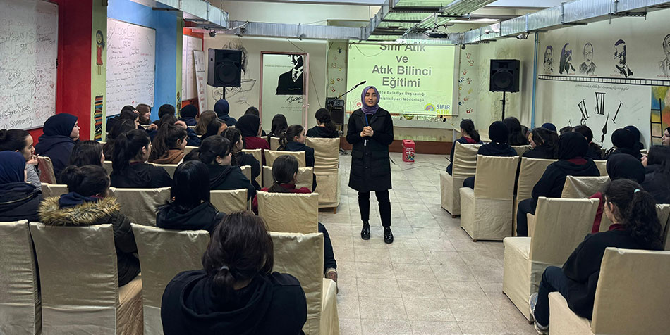 Her yaştan öğrencilere yönelik devam eden bilinçlendirme ve eğitim faaliyetlerine Mevlana Mesleki ve Teknik Anadolu Lisesi ile devam eden müdürlük ekipleri, okulun toplantı salonunda gerçekleştirilen eğitimlerle öğrencilere israfın önlenmesi başta olmak üzere, atık yönetimi kapsamında doğal kaynakların verimli kullanılması, atık oluşumunun minimize edilmesi konularında ‘Sıfır Atık’ eğitimi verildi.