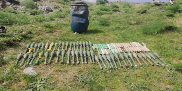 Şırnak Jandarma Bölge Komutanlığı koordinesinde Cudi Dağı Tuşimiya bölgesinde başlatılan “Eren Abluka-17 Şırnak-Şehit Jandarma Teğmen İsmail Can Akdeniz-2” operasyonu kapsamında Beytüşşebap ilçesinde toprağa gömülü halde; 49 adet RPG-7 roketatar mühimmatı, 52 adet sevk fişeği ve 1 adet jelikan bidon ele geçirildi.