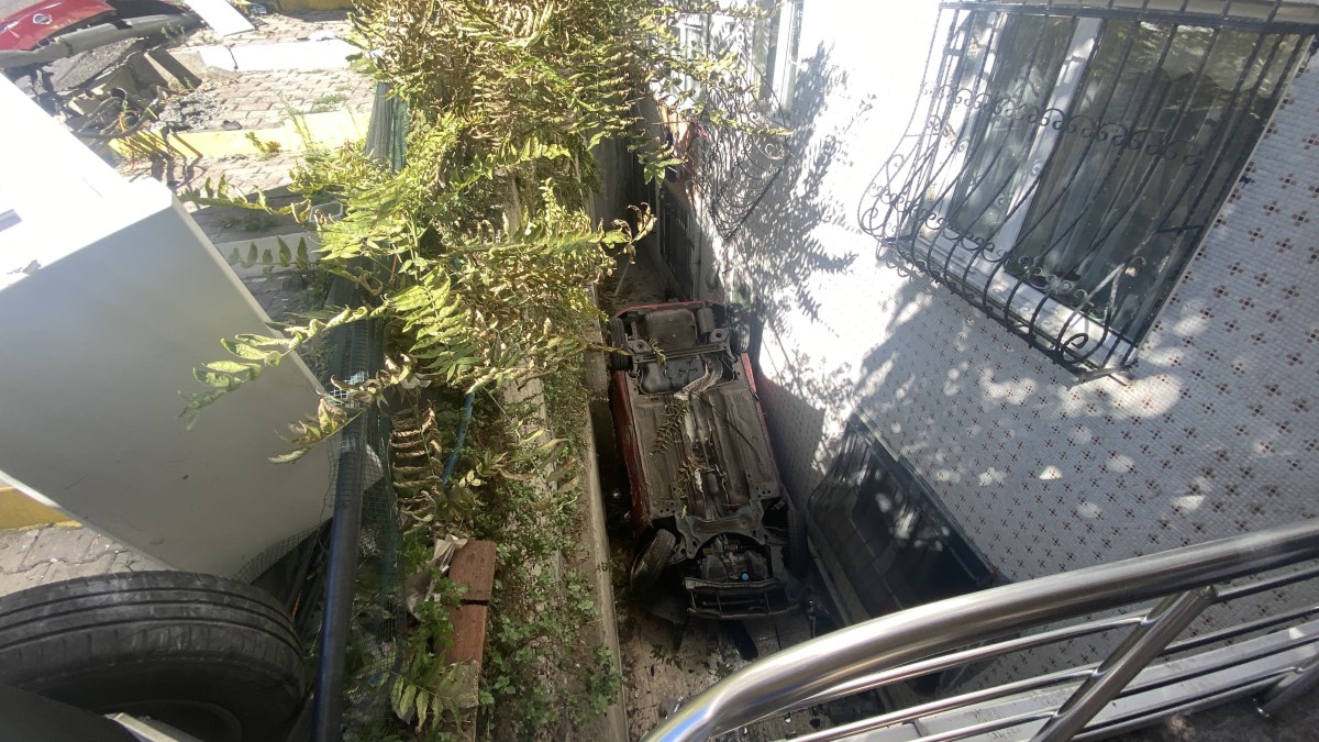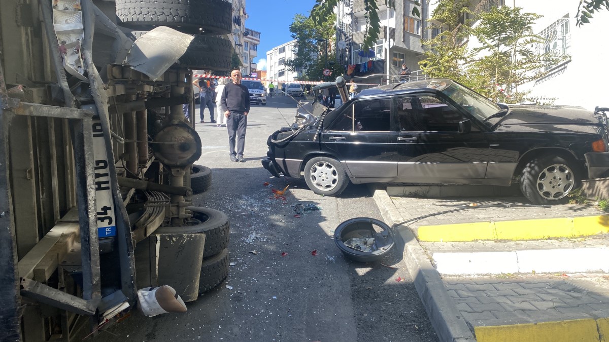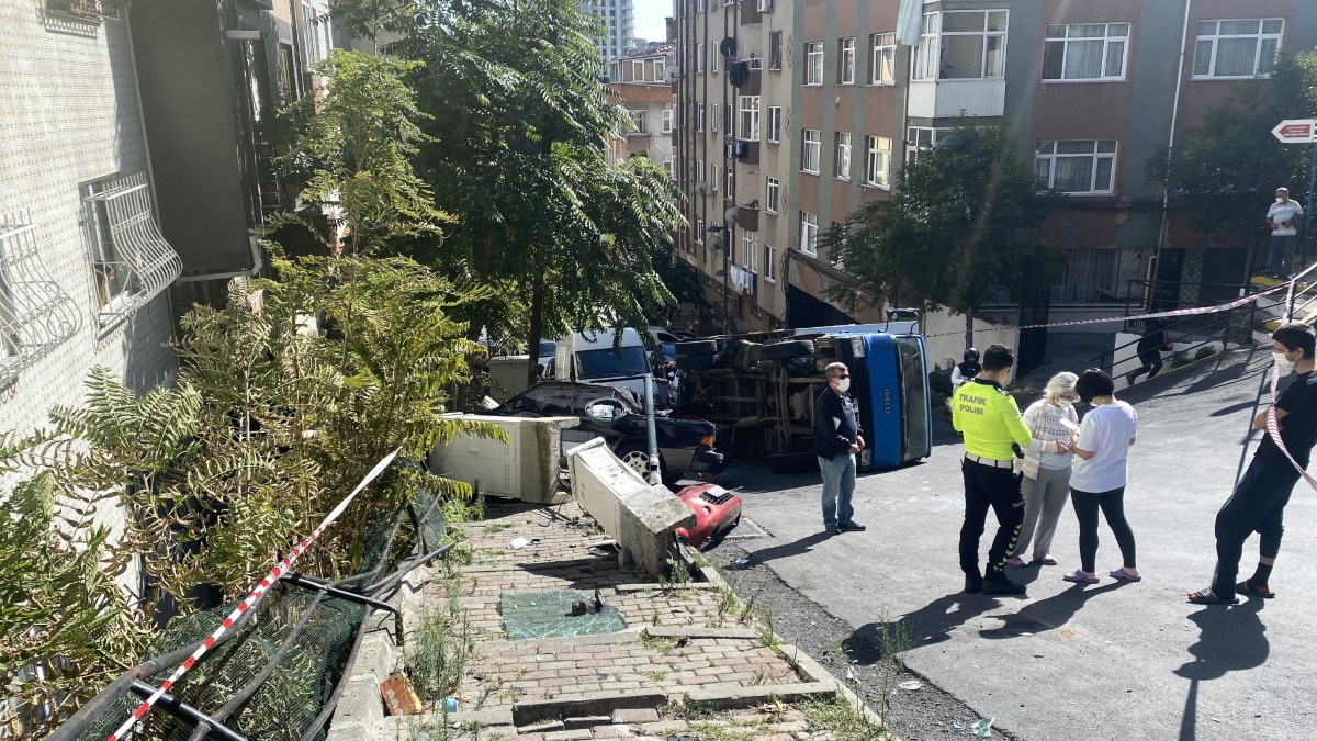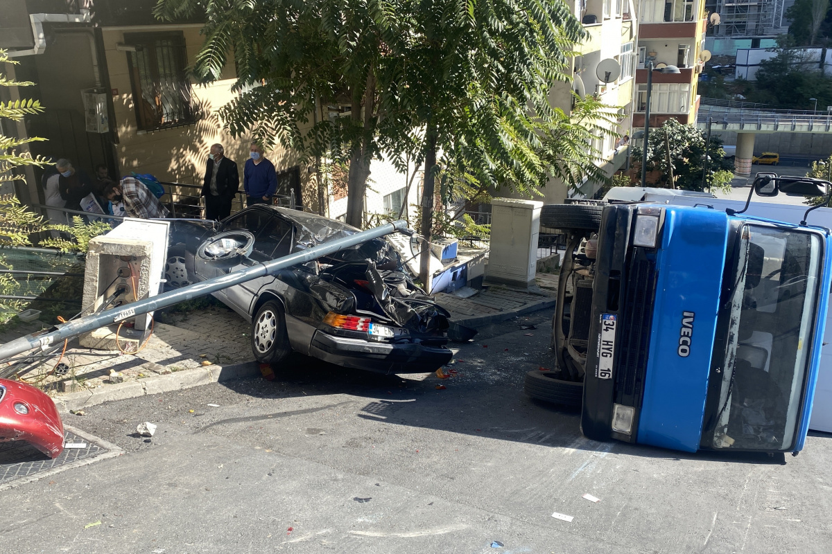 Kontrolden çıkan araç, park halinde bulunan 34 END 29 VE 34 JA 5155 plakalı 2 araca çarptıktan sonra internet dağıtım kutularını yerinden söktü ve devrilerek yan yattı. Kamyonetin çarptığı araçlardan birini sokak üzerindeki binanın boşluğuna düşerken, diğer araçta da ağır maddi hasar oluşturdu.