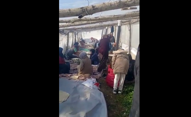Ağır kış şartlarının sürdüğü köyde vatandaşlar ekmek yapabilmek için yazın sebze yetiştirmek amacıyla kullanılan seralarda toplandı.