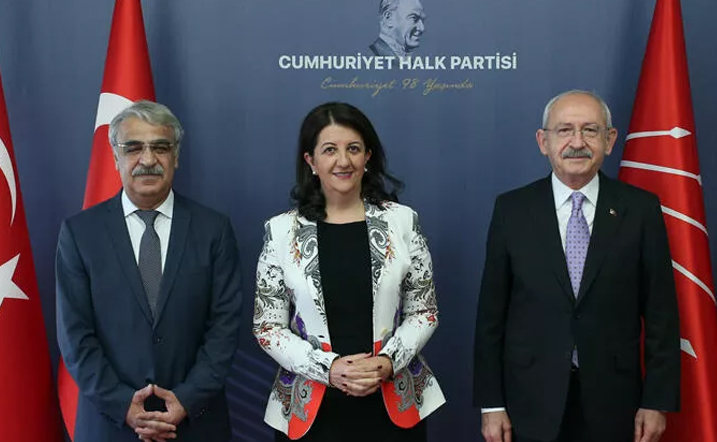 HDP ile bazı partilerin görüştüğünü bazılarının görüşmediğini söyleyen Kılıçdaroğlu, "Biz HDP ile görüşüyoruz çünkü tarihin bize yüklediği bir misyon var. Gerçek anlamda bir demokrasi için mücadele ediyoruz, bu bizim tarihsel sorumluluğumuz." ifadelerini kullandı.