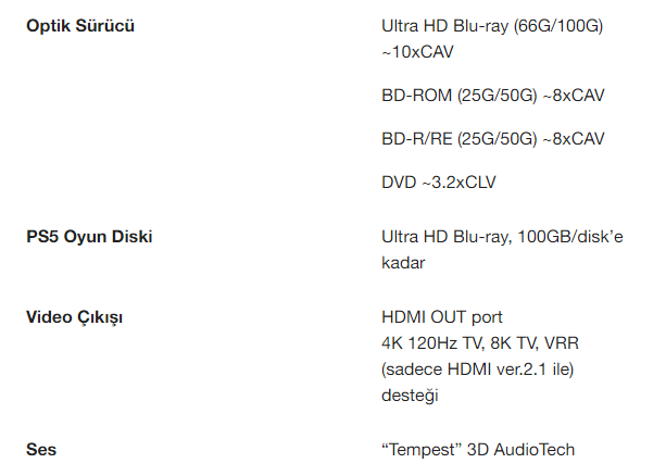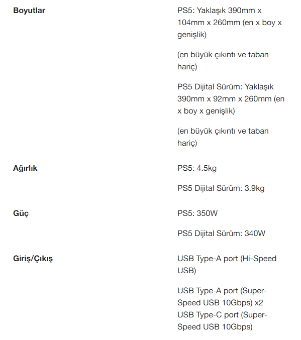 PLAYSTATION 5 DONANIMSAL ÖZELLİKLERİ