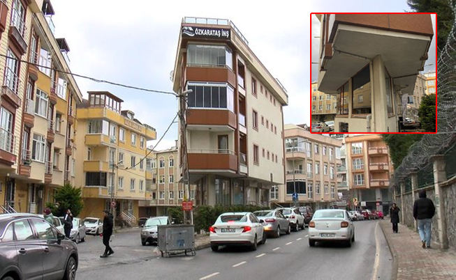 Üçgen yapısı ile ön bölümünden, ince bir duvarın üzerine inşa edilmiş görüntüsü veren binanın giriş katlarında işletmelerin de olduğu görüldü.