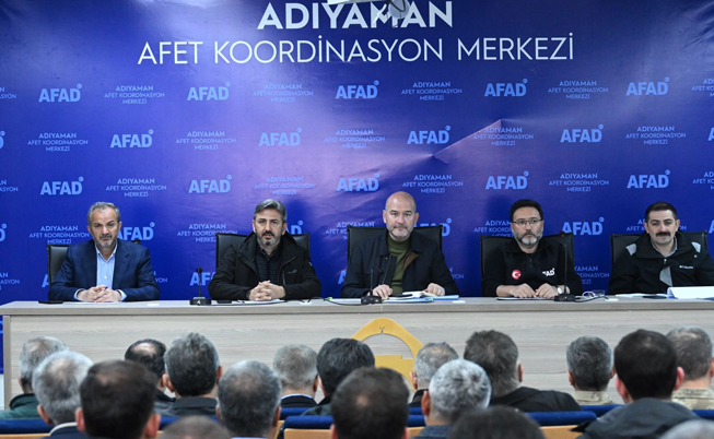 İçişleri Bakanı Süleyman Soylu, Adıyaman Afet Koordinasyon Merkezinde açıklamalarda bulundu.