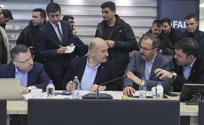 Yurt içi ve yurt dışından birçok ekip görevinin başındadır. Kahramanmaraş'ta da 941 bina yıkıldı, biraz daha fazla bina olduğunu düşünüyoruz. 600 hemşehrimizi defnettik. Herkes bütün arama kurtarma ekiplerimiz enkaz altındaki vatandaşlarımıza onları oradan canlı kurtarabilmek için ellerinden gelen mücadeleyi canhıraş ortaya koymaktadırlar.