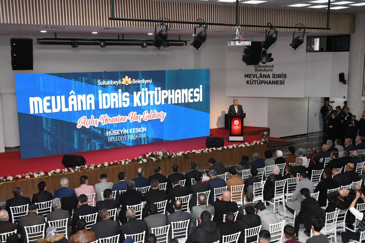 Açılış töreninde konuşan Belediye Başkanı Hüseyin Keskin, gençlerin ülkemizin gözbebeği olduğunu ifade ederek, “Yarınların üreten Türkiye’si; hiç şüphesiz okuyan, öğrenen, kitabı kendine dost edinen gençlerimize bağlıdır. Sultanbeyli Belediyesi olarak bu bilinçle gençlerimize yönelik yatırımlarımızı sürdürüyor; değerlerine sahip çıkan, bilimin ışığında bir gençliğin yetişmesi için var gücümüzle çalışıyoruz. Bu anlamda gençlerimize yönelik kalıcı yatırımlarımızdan birini daha hayata geçirdiğimiz, Mevlâna İdris Kütüphanemizi İstanbul’un ve ilçemizin hizmetine sunuyoruz. Gençlerimizin özellikle akademik hayatlarına büyük katkılar sağlayacağına inandığım, öğrencilerimizin oldukça verimli vakitler geçireceği kütüphanemiz gençlerimize ve ilçemize hayırlı olsun. Tüm çabamız gençlerimizin güçlü yarınları için. Burada 7 gün 24 saat kesintisiz hizmet sunacağız. Bunun da önemli bir açığı kapatacağına inanıyorum.” dedi.