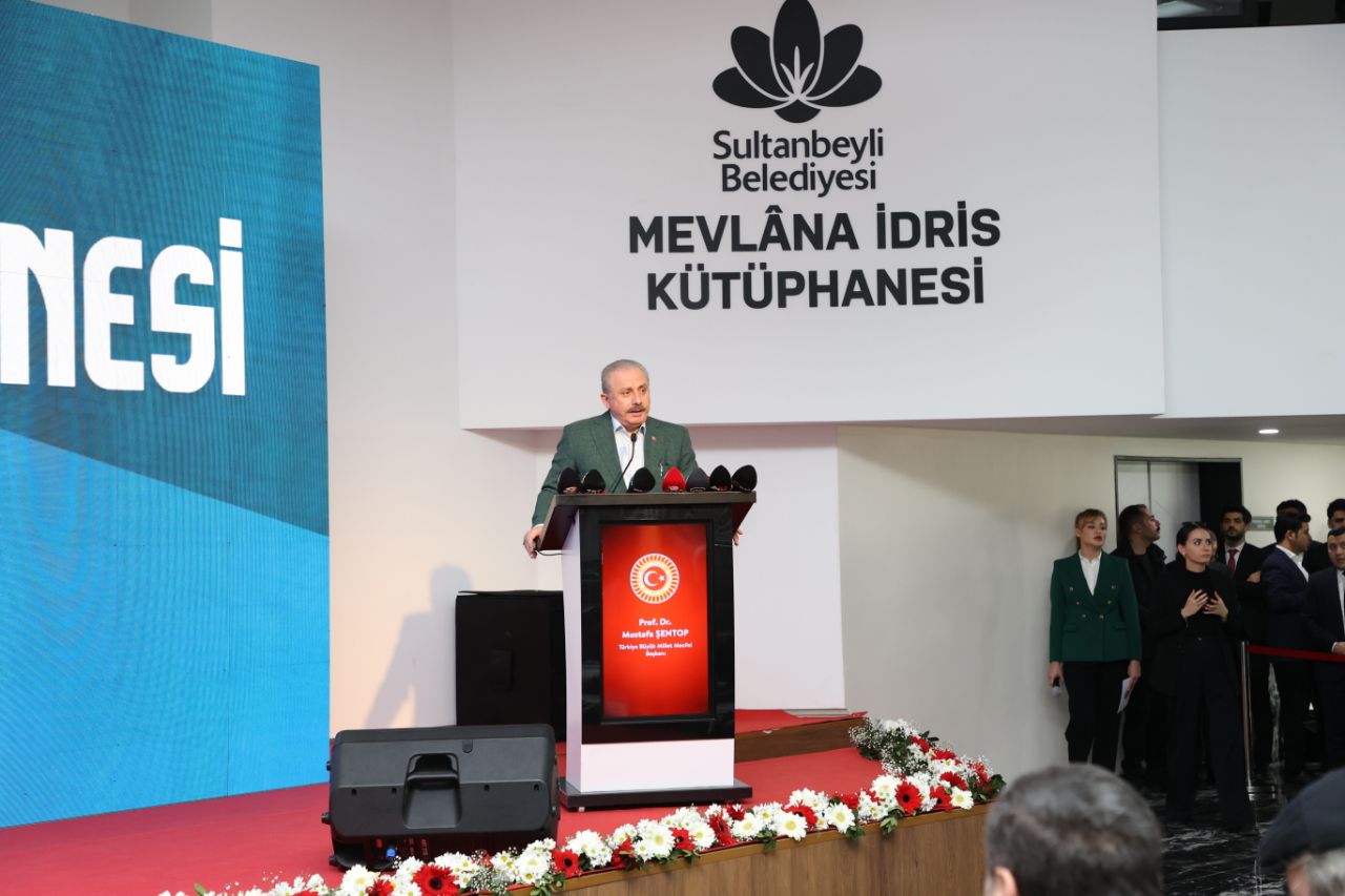TBMM Başkanı Şentop, kütüphanenin açılışında yaptığı konuşmada, Sultanbeyli’nin kültürel çalışmalarla da dikkati çektiğini belirterek, “Belediye Başkanımızı tebrik ediyorum. Nice böyle çalışmalar, inşallah devam eder. Bu kütüphanenin 7/24 açık olması son derece önemli. Bizim gençliğimizde kütüphaneler normal mesai saatleri içerisinde çalışırdı. 17.00-17.30 gibi kütüphaneler kapanırdı. Marmara Üniversitesinde idari görevdeyken dekan arkadaşımızın da gayretleriyle gece 12’ye kadar açık yapmıştık kütüphaneyi. Çok ilgi çekmedi. Ama zaman içerisinde 24 saat açık olan kütüphanelerin kıymeti anlaşıldı. İlçelerimizde özellikle gençlerin çalışabileceği mekanların olması son derece önemli. Rahmetli Mevlana İdris, bizim okul yıllarından arkadaşımız. Vefatına kadar yakın arkadaşlığımız, dostluğumuz devam etti. Biz de 1988 yılında dergi çıkarttık. O dergiye görünür, görünmeyen destekleri oldu. Bir hukuk dergisi. Bizim bilhassa edebiyat ilgimizi canlı tutan, Andırın Postası’nın eki İkindi Yazıları’nda genç yazarlara, yeni yeni edebiyat şiir alıştırmaları yapan gençlere sayfalarını açtı. Yakın arkadaş çevremiz vesilesiyle çok sık görüşmüştük” diye konuştu.