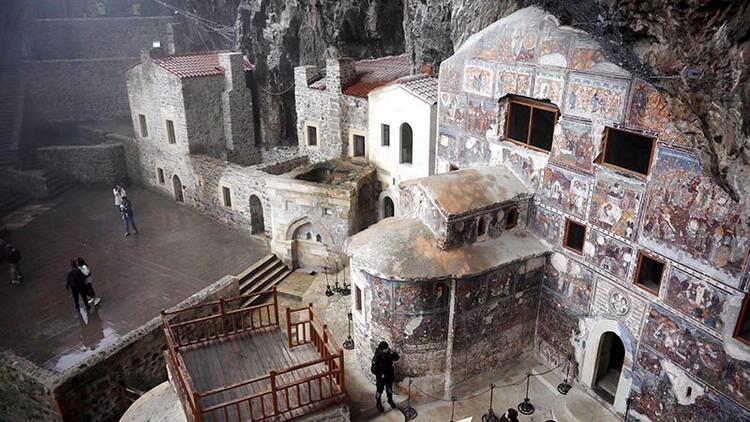Yaklaşık 300 metre yükseklikteki ormanda kayaların oyulmasıyla yapılan Sümela Manastırı, halk arasında 'Meryem Ana' adıyla da biliniyor. Hakkında çeşitli rivayetler de bulunan ve kuruluşu bilimsel verilere göre, 13'üncü yüzyıla uzanan tarihi manastırda, hizmet birimleri, misafirhane, mutfak ve ayazmanın dışında toplam 72 oda bulunuyor. 2010'da binlerce kişinin katılımıyla düzenlenen ayini, Fener Rum Patriği Bartholomeos yönetti.