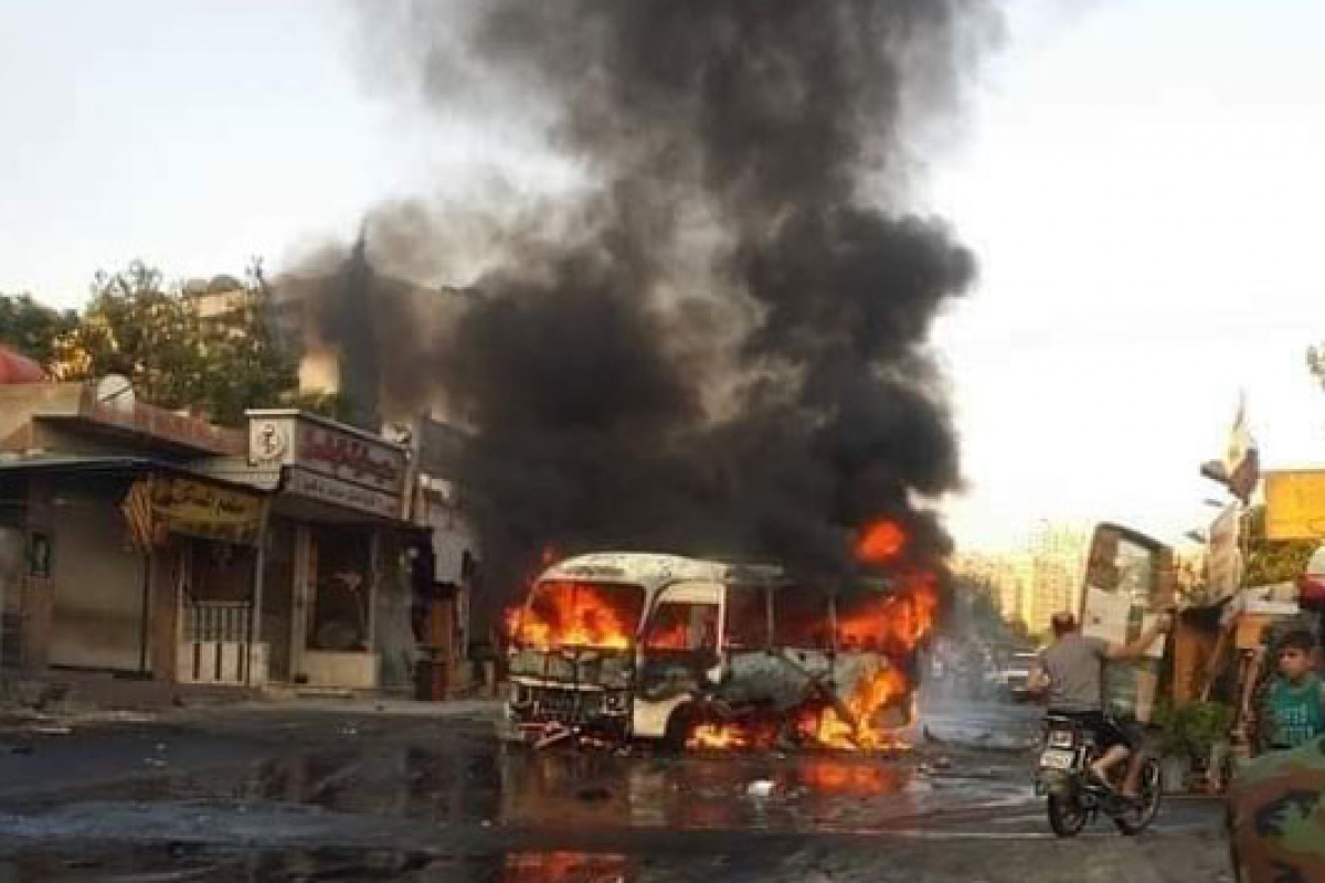 Suriye'nin başkenti Şam'da Esad rejimine bağlı askerleri taşıyan otobüste patlama meydana geldi. Patlamada bir asker hayatını kaybederken, 3 asker de yaralandı.