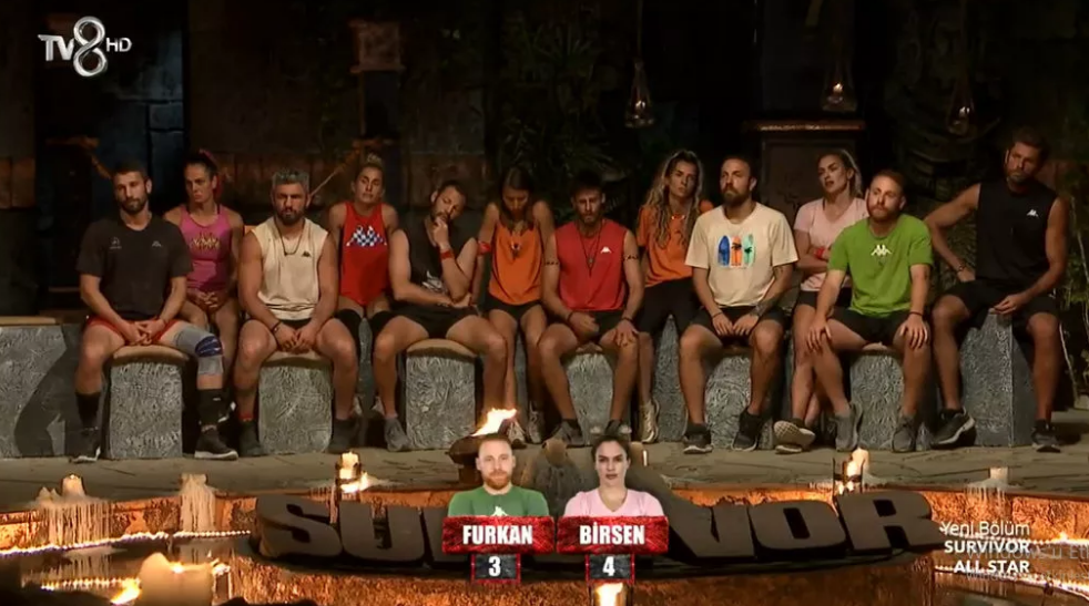 Oylamada Birsen'e 5, Furkan'a 4, Parviz ve Mert'e ise birer oy çıktı. Böylece Survivor ünlüler takımında eleme adayı olarak sürgün adasına giden ikinci yarışmacı Birsen Bekgöz oldu.
