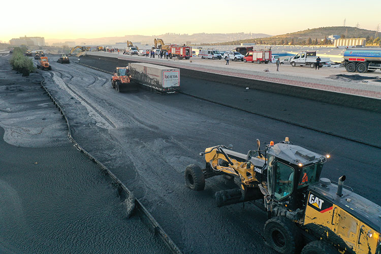 "Dün yaklaşık olarak burada 3 metreye yakın bir atık çamuru vardı. Şu an yüzde 80-90'ı tamamlandı. Başta Organize Sanayi Bölgesi'nin kendi ekibi olmak üzere Büyükşehir Belediyesi, Karayolları koordineli olarak çalışıyorlar. AFAD, jandarma, emniyet, onlar da kendi alanında çalışıyorlar. Burada herhangi bir araç kalmadı. çok daha ileride akışkanlıktan dolayı bir araç kaza yapmıştı ve 4 hafif yaralı vardı. Onun dışında herhangi bir sıkıntı yok.