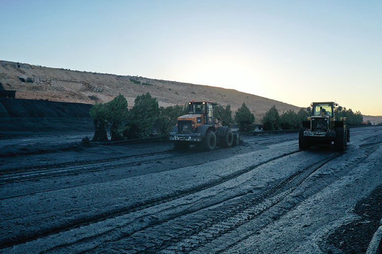 Otoyolda biriken çamurlu suyun tahliyesine başlandı. Onlarca iş makinesi, otoyolun çevresindeki dağlık yerlerden delikler açarak suyu tahliye ediyor.