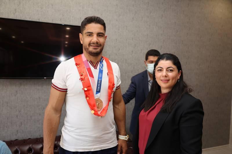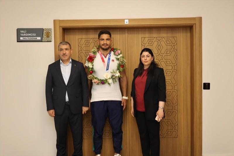 Valilikten yapılan açıklamaya göre, Tokyo'dan bronz madalya ile dönen milli güreşçi, memleketi Sivas'ta Vali Vekili Yeliz Yıldızhan'ı makamında ziyaret etti.