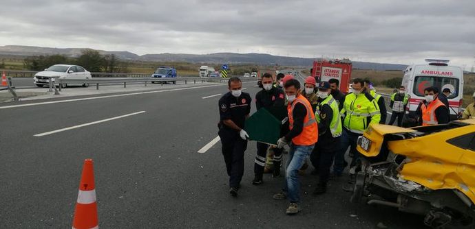 AA'da yer alan habere göre taksi, Edirne istikametinde seyreden Nevzat Yazıcı idaresindeki 34 TC 8219 plakalı kamyonla çarpıştı.
