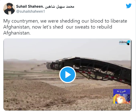 Taliban'ın sözcülerinden Süheyl Şahin, Taliban'ın altyapı çalışmalarına başladığını yayınladığı video ile duyurdu: