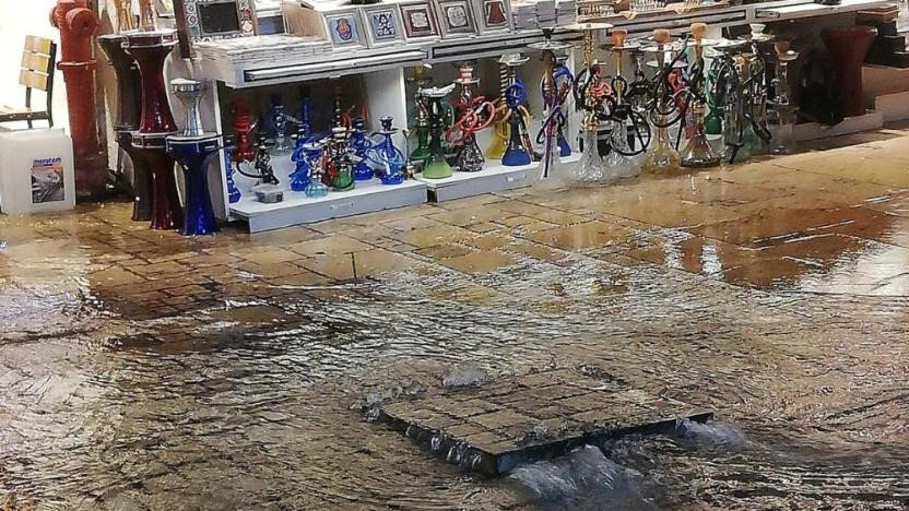Fatih’te bulunan tarihi Kapalıçarşı’da gider taştı. Giderlerin taşması sonucu çarşıyı su bastı.