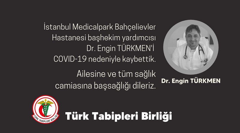 İstanbul Medicalpark Bahçelievler Hastanesi'nde Başhekim Yardımcısı olarak da görev yapan Uzman Doktor Engin Türkmen'in bir süredir koronavirüse karşı mücadele ettiği ve yoğun bakımda olduğu belirtildi. Doktor Türkmen, koronavirüse karşı verdiği savaşı kaybetti.