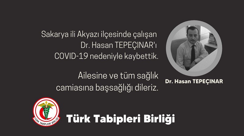 İç Hastalıkları Uzmanı Dr. Hasan Tepeçınar, Sakarya Akyazı'da bir tıp merkezinde görev yapıyordu. Ancak çalıştığı yerde koronavirüse yakalanan 52 yaşındaki Tepeçınar, evde koronavirüs tedavisi görmeye başladı. Şeker ve tansiyon hastalıkları olan Tepeçınar, evinde aniden fenalaştı ve Akyazı Devlet Hastanesi'ne sevk edildi. Burada doktorların tüm çabalarına rağmen yaşamını yitirdi.