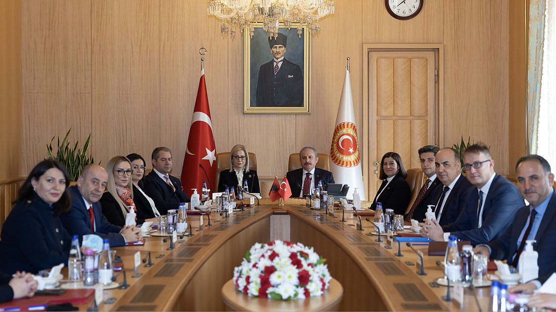 TBMM Başkanı Mustafa Şentop, Arnavutluk Meclis Başkanı Lindita Nikolla ile önce baş başa görüştü, ardından heyetler arası görüşmeye geçildi.