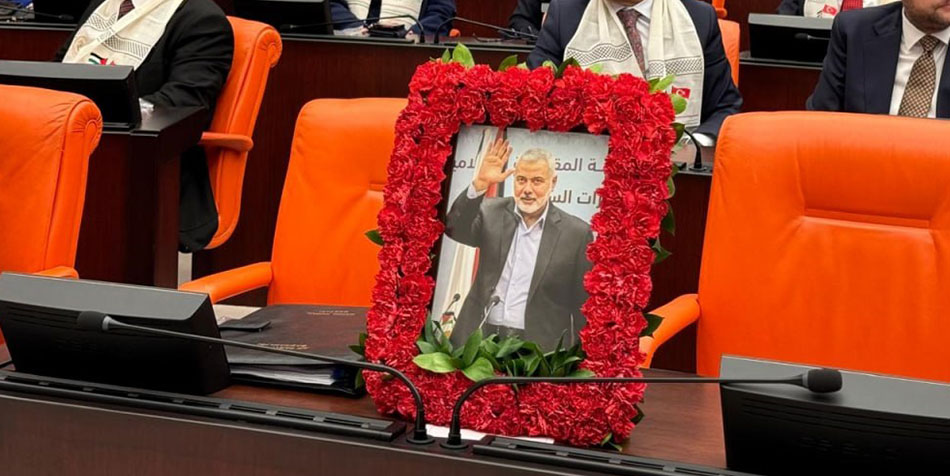 Filistin Devlet Başkanı Mahmud Abbas'ın konuşması için toplanan Meclis’te şehit İsmail Haniye’nin fotoğrafı TBMM sıralarında yer aldı.