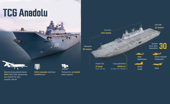 Türkiye'nin yeni amiral gemisi TCG Anadolu'nun birçok yönden benzersiz, yenilikçi ve becerikli olacağı da analizde vurgulanan çarpıcı bir noktaydı.