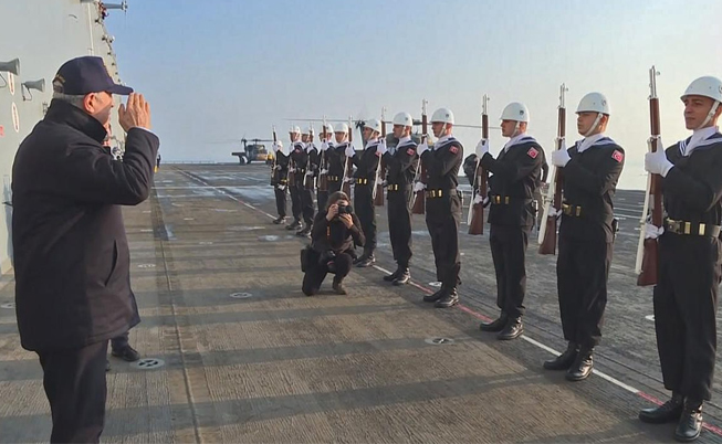 Milli Savunma Bakanı Hulusi Akar, beraberinde Genelkurmay Başkanı Orgeneral Yaşar Güler, Kara Kuvvetleri Komutanı Orgeneral Musa Avsever, Deniz Kuvvetleri Komutanı Oramiral Ercüment Tatlıoğlu ve Hava Kuvvetleri Komutanı Orgeneral Atilla Gülan ile Anadolu gemisini ziyaret etti.