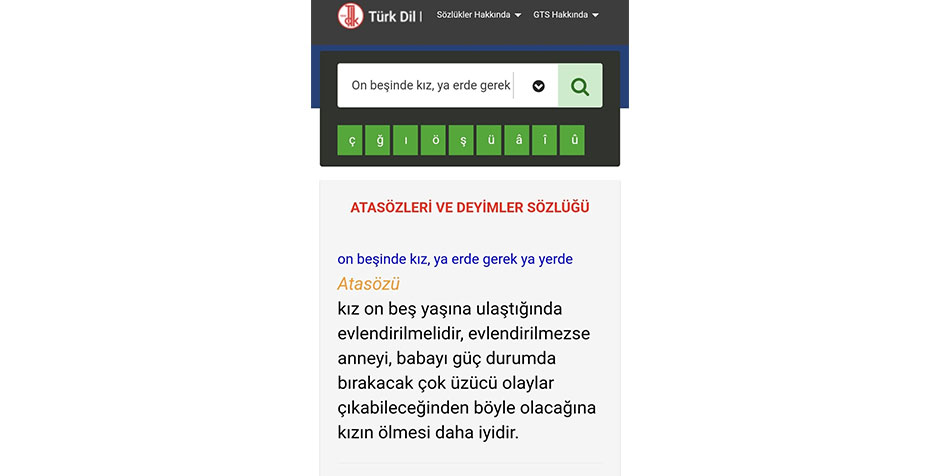 Türk Dil Kurumu’na hitaben "On beşinde kız ya erde gerek ya yerde" atasözünün Sözlük’ten çıkarılması talebiyle Change. org platformunda M. Serdar Fırat adlı vatandaş tarafından başlatılan kampanya 6875 kişinin desteğini almış, konu basında ve sosyal medyada büyük ses getirmişti. TDK bu çağrıya cevap vererek bu atasözünü 1 ay içinde Sözlük’ten çıkardı.