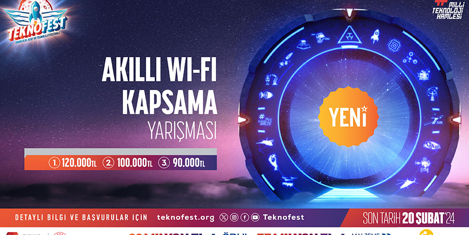 Turkcell yürütücülüğünde, TEKNOFEST kapsamında bu yıl ilk kez düzenlenen teknoloji yarışmaları arasında olan Akıllı Wi-Fi Kapsama için son başvuru tarihi 29 Şubat 2024.