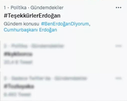 Cumhurbaşkanı Erdoğan'ın Kabine Toplantısı sonrası verdiği müjdeden sonra #TeşekkürlerErdoğan etiketi Twitter'da gündem oldu. Etikete kısa sürede on binlerce tweet düştü.