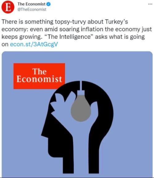 İngiltere merkezli The Economist dergisinin podcast yayınında Türkiye ekonomisi ele alınırken, ekonomideki görünüm için "Türkiye ekonomisinde ters giden bir şeyler var: Yükselen enflasyonun ortasında bile ekonomi büyüyor." yorumu yapıldı.