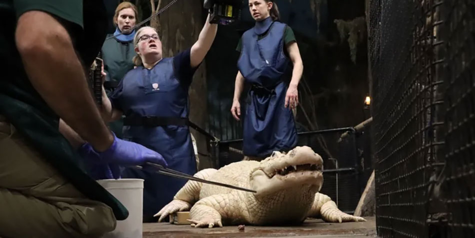 Henry Doorly Hayvanat Bahçesi’nde bulunan 10 timsahın tamamı kan alma ve radyografi gibi çeşitli muayenelerden geçirildi.