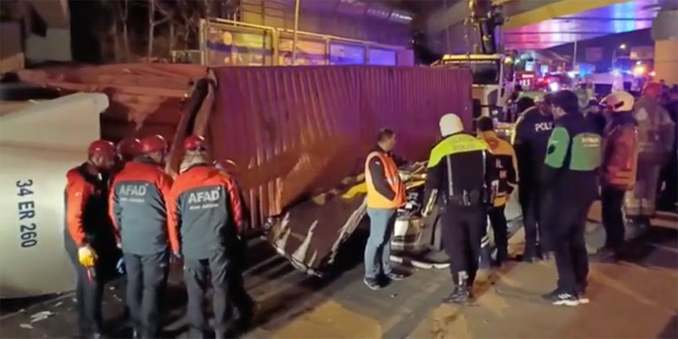 İstanbul Valiliği'nden yapılan açıklamada, saat 18.45 sıralarında Bakırköy Yeşilyurt Hava Harp Okulu önündeki Havuzlu Kavşağı alt geçidinde devrilen kamyonun altında kalan otomobilde bulunan 2'si çocuk 4 kişinin hayatını kaybettiği belirtildi.
