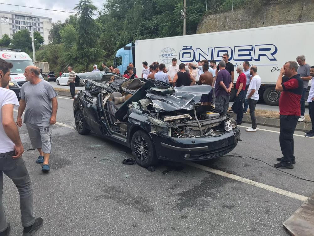 Kaza, Akçaabat ilçesinin Darıca mahallesinde meydana geldi. Edinilen bilgiye göre, Trabzon'dan Giresun istikametine gitmekte olan B.K. yönetimindeki 06 AY 0235 plakalı otomobil aynı istikamette ilerleyen A.E. yönetimindeki 48 LJ 929 plakalı tıra arkadan çarptı.