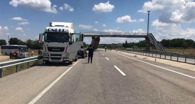Edinilen bilgiye göre, M.Ö. idaresindeki 17 ABJ 838 plakalı çekici ve buna bağlı 17 ABD 933 plakalı damperli dorse Tekirdağ'dan Malkara istikametine seyir ederken açık kalan dorse, Ahievren Köprüsü olarak bilinen üst geçide çarptı.