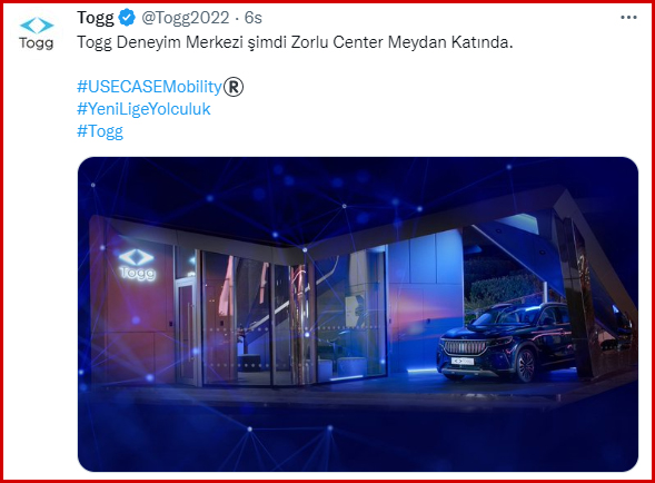 İlk yerli ve milli araç olan Togg'un açılış töreni 29 Ekim Cumhuriyet Bayramı'nda gerçekleştirilmişti.