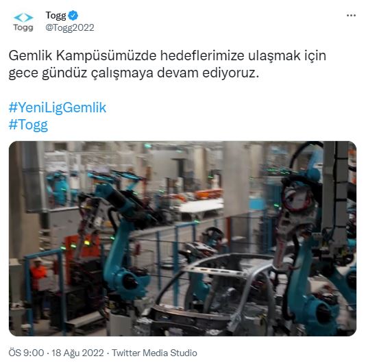 TOGG'dan yeni bir paylaşım geldi. Yapılan paylaşımda TOGG tesislerine ve otomobilin üretim bandından görüntülere yer verildi.