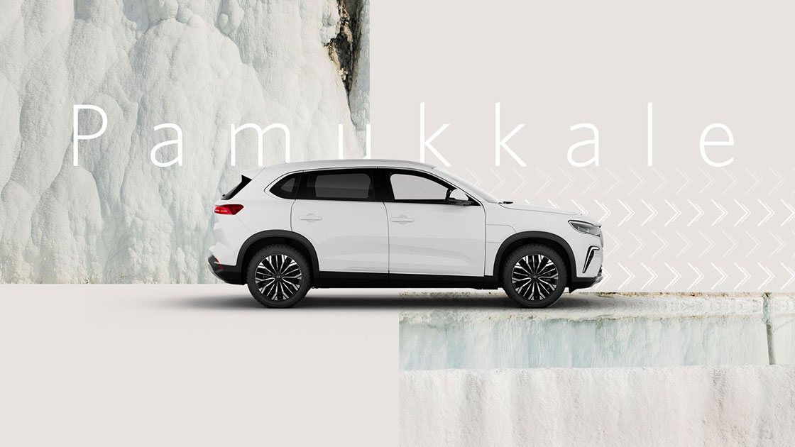 Togg, kampüsünün de yer aldığı Gemlik’in zeytin ağaçlarının gölgesindeki mavi sularını, Anadolu topraklarındaki cana yakınlık ve tutkuyu yansıtan kırmızıyı, Oltu taşının göz alıcı siyahlığını, parlak dokusunu, sağlam yapısını, Kula’nın doğal yapısı, kayaçları ve vadileriyle yerkürenin milyonlarca yıllık geçmişini bugüne taşıyan gri ihtişamını, Kapadokya’nın olağanüstü güzellikteki doğa harikası peri bacalarının toprak ve kum bejini, Pamukkale travertenlerinin göz kamaştıran beyazlığını, C-SUV’un dış renklerinde buluşturdu.