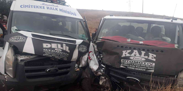 Nurettin G. (57) idaresindeki Ford transit marka 60 M 2057 plakalı yolcu minibüsü ile Hasan E. (42) idaresindeki Ford marka 60 ACH 330 plakalı kamyonet kafa kafaya çarpıştı.