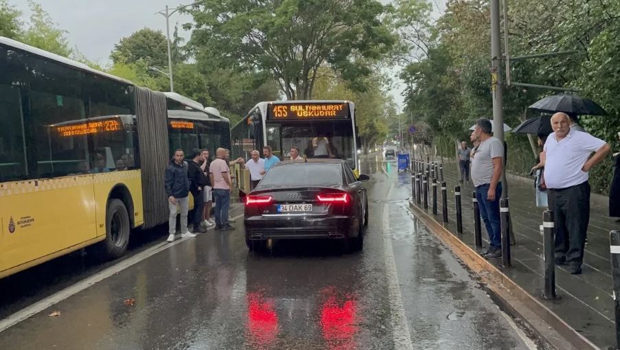 Otomobil sürücüsü, ikaz etmesine rağmen İETT otobüsünün yola çıktığını iddia etti. Sürücü, "Ben normal yolumdayım, her şeyiyle düzgün yolumdayım. Polis çağırdı, gelsin polis, kim hatalı görsün burada. Bir de bana hareket yapıyor." dedi.