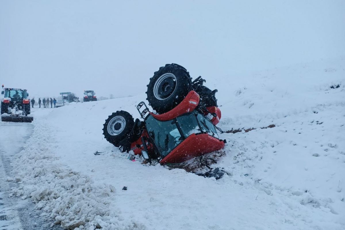 Traktör karlı yolda şarampole uçtu: 1 ölü